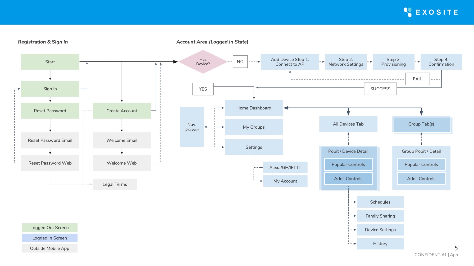 Exosite had a product-market fit problem in Asia as the customer opportunities were largely in manufacturing and lacked any software development capabilities. Our answer was ExoHome, a complete home automation solution—from device firmware to customizable mobile apps—for global brands and OEMs to offer smart controls to consumer devices like thermostats, air conditioners, fans, and lights.