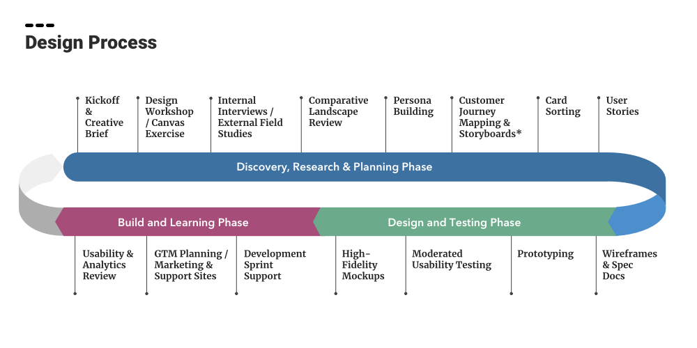 | Launch a new product to support OEM/ODM opportunities in the APAC region. | Design Strategy, Competitive Analysis, Persona Development, Customer Journey Mapping, Wireframes, Visual Design System, Remote User Interviews, Development Support, Marketing and Collateral Design | 18 mo. |