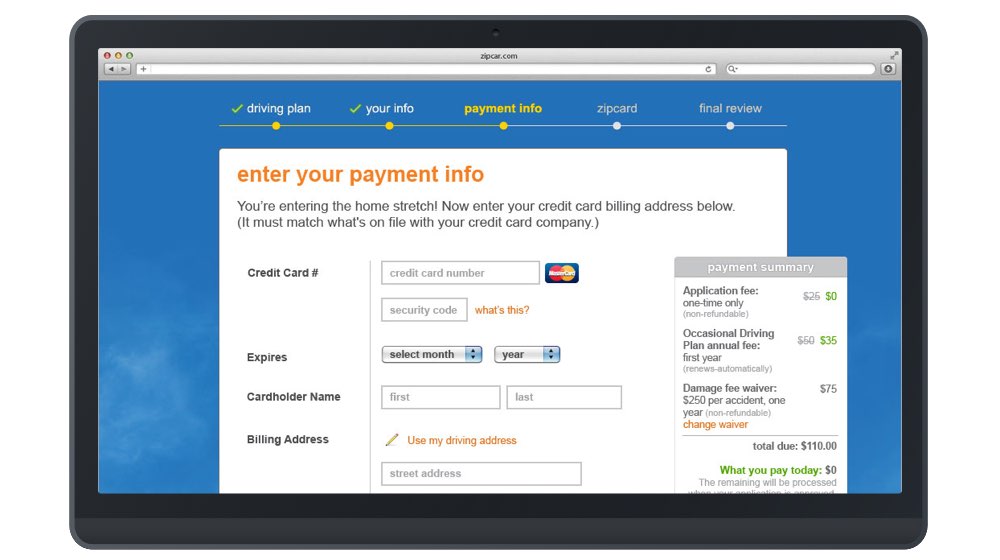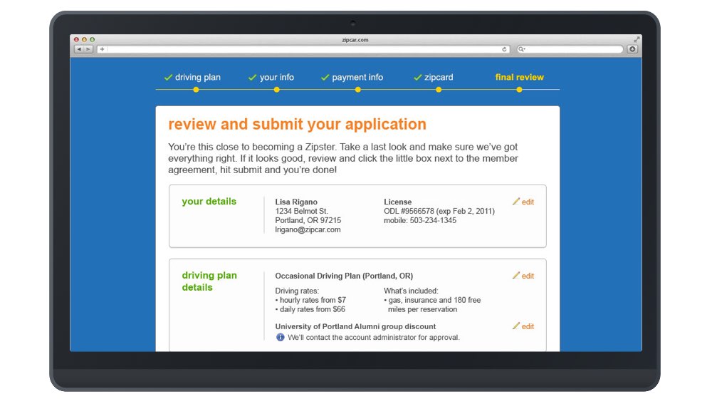 Right on the heels of a massive marketing site redesign, the team got to work on the one place we postponed because we knew it needed additional TLC. The member registration process at Zipcar was a unique and visually tangled mess, built up over the years with an ever increasing list of business requirements and technical decisions.